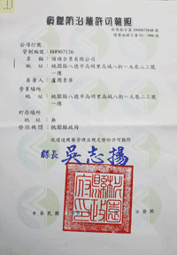 病媒防治許可執照 | 投保公共意外責任險 | 甲種勞工安全衛生人員證書 |